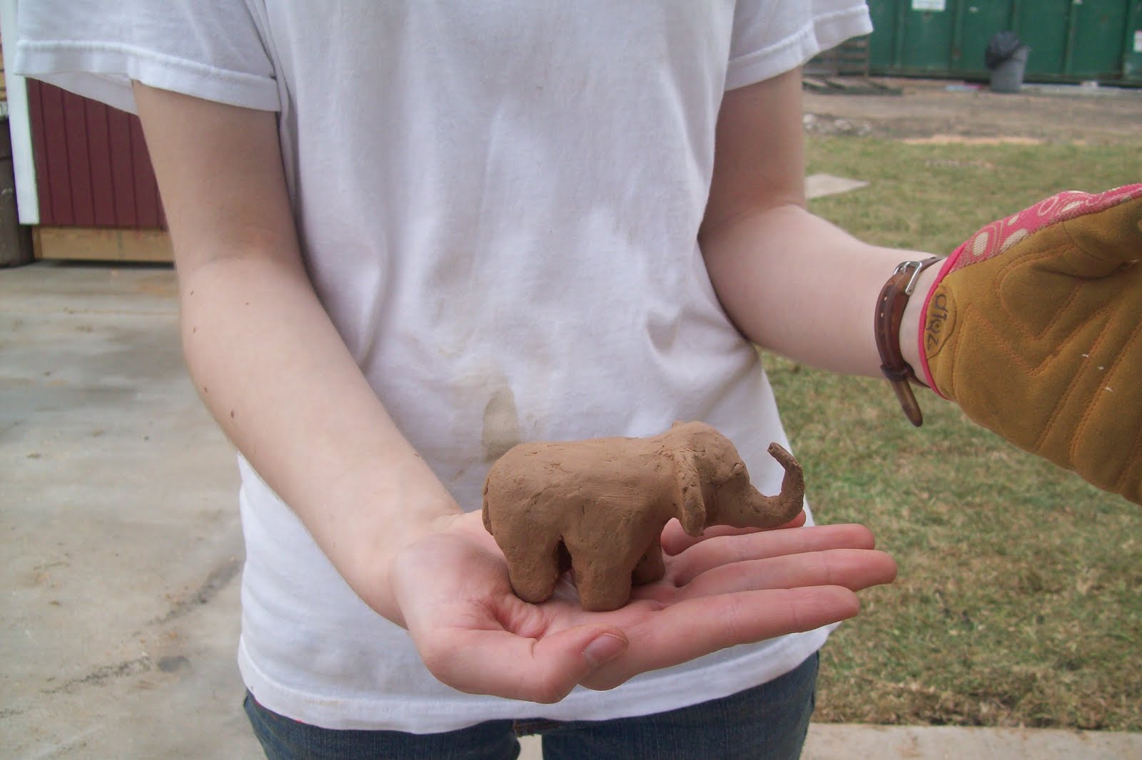 Through all of the labor intensive work, the group still took time to play! Their Art Instructor molded small, yet detailed, creations out of the clay of the earth. Here is a picture of the elephant he constructed on their second and final day with us: