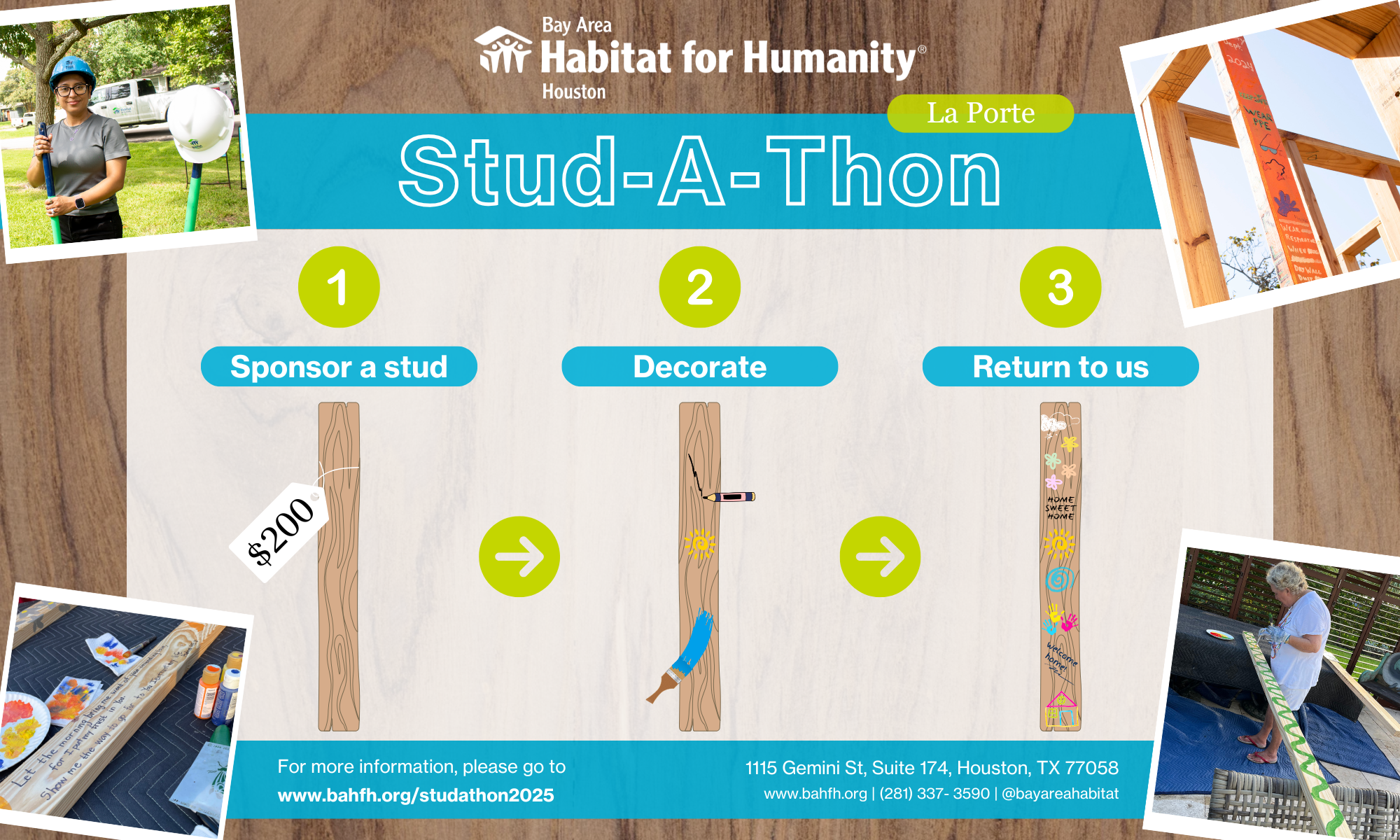 No, it’s not a person! A stud is a 2×4 piece of wood that is used to frame a home. Each stud is 9ft long. It takes up to 300 studs to frame a home, so every donation makes a difference!
