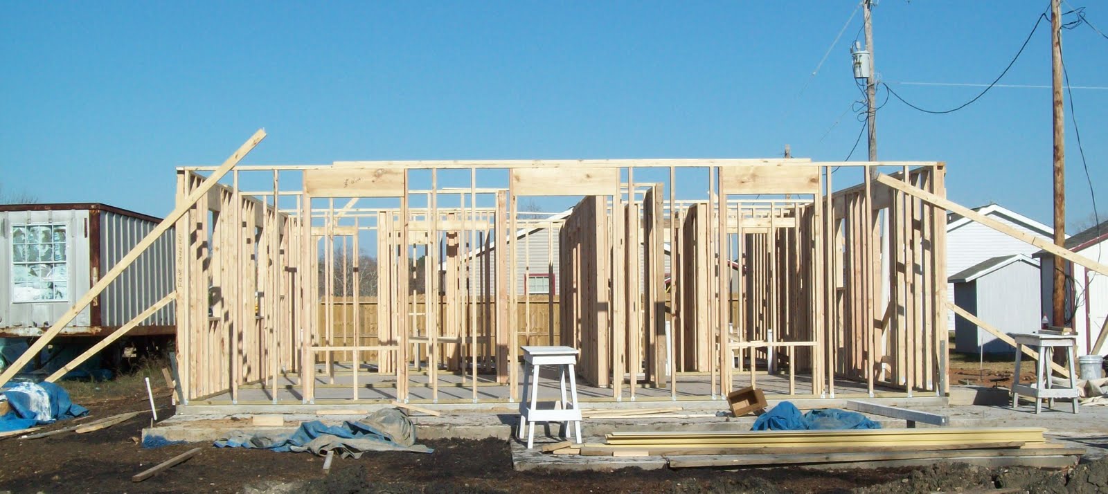 Full of energy and excited to do something good for someone else, they worked full 9 hour work days Monday-Thursday in the blustering cold (40-50 degree weather…that’s “blustering” to Texas folk, people!). On the first day, they endured a two-hour long safety briefing and tour of the site, cleaned up the slab that was full of random pieces of wood, siding and other building materials and started framing the house. By the end of the second day, the whole house was framed! Wednesday and Thursday, the group “blocked” and secured the structure, attached hurricane clips and ceiling joists, and had the entire outside covered in plywood and tyvec! Even the framework for the family’s shed was finished. Impressive!